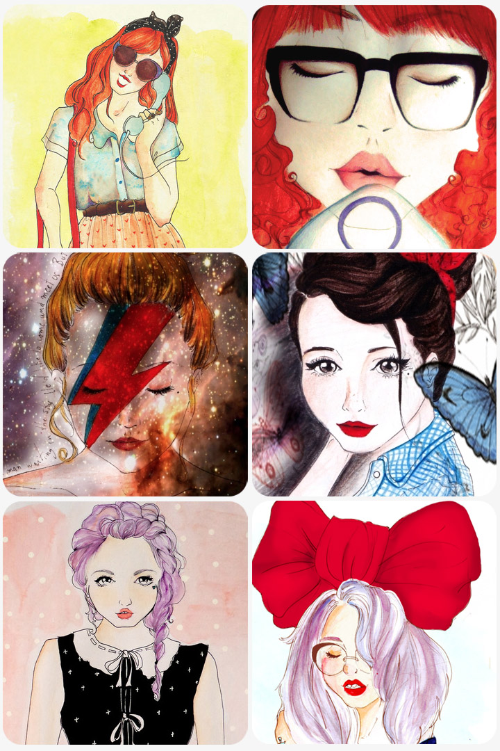 ilustrações aquareladas que retratam meninas com uma vibe “fashionista